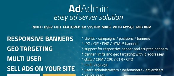 This software is written for publishers who own sites and need to show banners, it’s an ads system that can be installed on your server. AdAdmin lets you sell banners (you need a Paypal account or a Coinbase Commerce account) control ads and advertising positions, rotate banners, create responsive banners, monitor views and clicks, share stats with your clients (advertisers) and anything you need to manage ads on your site. You can upload images to create banners and use our banner templates to easy create overlay banners and responsive ads without coding. You can also use external scripts such as Google AdSense code. Demo: https://codecanyon.net/item/adadmin-easy-adv-server/12710605 Download [Hidden Content]