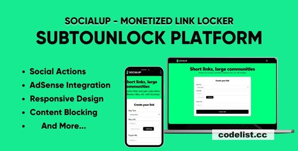 SocialUp is a powerful PHP script designed to enhance website engagement. With SocialUp, you can boost user interaction by unblocking previously restricted links, allowing visitors to explore more content freely. Moreover, it seamlessly integrates AdSense, enabling website owners to monetize their content and generate revenue. Additionally, SocialUp facilitates the unlocking of exclusive content in exchange for social actions, encouraging increased participation and sharing across various social platforms. Elevate your website's engagement and monetization strategies with SocialUp today! Demo: https://www.codester.com/items/48471/socialup-monetized-social-unlock-link https://workupload.com/file/Uhcd4ZUXxcr https://www.upload.ee/files/17761719/socialup-10.rar https://qiwi.gg/file/faWS9584-socialup-10 https://pixeldrain.com/u/ytGf4YTX https://www.mirrored.to/files/0G4DB6CA/socialup-10.rar_links https://krakenfiles.com/view/pFTEwY4LrN/file https://katfile.com/f89pfdth7lza https://hxfile.co/qpp56phhrnhq https://ddownload.com/7i4m9uzjq16k https://clicknupload.site/8smdj0x9p3u0 https://1fichier.com/?e34dkah3zs59cnd8v568 This file has UNTOUCHED status - (original developer code without any tampering done) View the full article