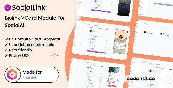 23. SocialLink is a powerful bio link plugin designed exclusively for the SocialAI script. It empowers users to create stunning and interactive bio link pages that make a lasting impression. With its unique features and seamless integration, SocialLink takes your online presence to the next level. Demo: https://codecanyon.net/item/sociallink-biolink-vcard-module-for-socialai/56154533 https://workupload.com/file/nR4hrDzMtsC https://www.upload.ee/files/17659023/sociallinkbiolink-10.rar https://qiwi.gg/file/xbyW4734-sociallinkbiolink-10 https://pixeldrain.com/u/49Pxmbdt https://www.mirrored.to/files/0FRL5OQD/sociallinkbiolink-10.rar_links https://mirrorace.org/m/3i3ma https://krakenfiles.com/view/6fssEDTTix/file https://katfile.com/4n5arr732iy2 https://hxfile.co/5lm9resiwjq6 https://ddownload.com/4qs1hwc0dwnb https://clicknupload.one/g04gecedz2fj https://1fichier.com/?m8h32s6cp8ozo9it00w7 This file has UNTOUCHED status - (original developer code without any tampering done) View the full article
