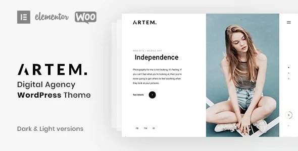 Artem - Digital Agency WordPress Theme is best suited for Digital Agency, Creative Agency, Portfolio, Personal Branding, Showcase, Photography, Artists, Architects, etc. Ultra Modern & Minimalistic Design, Modern technologies, amazing animation will make your project one of the Best. Includes 15+ Pre-Built Pages, Dark & Light versions, WooCommerce Support, One Click Demo Import, Powerful Portfolio, Parallax effects, Elementor Page Builder. No coding skills needed. Demo: Live Preview Downlaod artem-1.3.9.zip 2.4 Mb