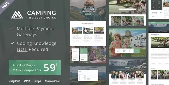Camping Village is suitable for any kind of travel activities such as caravan park, tent, camping bungalow, camping, cottages, campground and mobile home. The WordPress Travel theme is designed for outdoor mountain sports such as hiking, kayaking, biking and trekking. Manage your accommodation with the vacation booking system. Also suitable for tennis club, swimming pool, sports center and summer sports. Demo: Live Preview Downlaod camping-village-3.1.rar 18.5 Mb