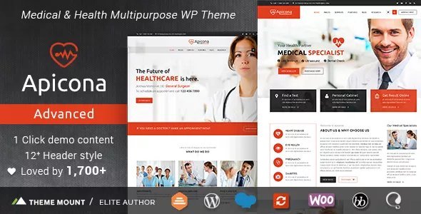 Health and medicine WordPress theme. One-click demo content import. Favicon support for iPhone, iPod, Android, Google TV, etc. Drag-n-drop page builder (WPBakery Page Builder plugin included). Added bbPress support. 3 heading styles. Unlimited skin color for all items using a color picker. 15+ page loader animations (GIF). Also upload your own animation. 4 layout styles. 9 super smooth page transaction effects based on HTML5 and CSS3. 3 options for page scrolling effects. 10 message formats. 100+ theme customization options. SEO friendly. Demo: Live Preview Downlaod apicona-22.3.0.rar 79.6 Mb