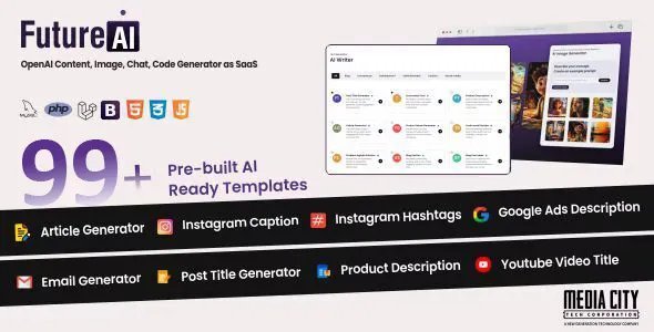 A FutureAi - OpenAI Content, Image, Chat, Code Generator as SaaS project that leverages the power of AI through OpenAI's to simplify and expedite the AI process for users. Demo: Live Preview Downlaod futureai-2.0.zip 201.4 Mb