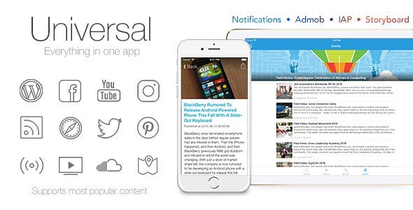 Unlimited Items – You can use & combine as many Timelines, Blogs, Feeds, Channels, Playlists, Stations, Webpages, etc as you want. Optionally add icons and create sections. Beautiful Design – We took great care of the UI of this template to make sure it is focussed on your content. Display the articles and videos in styled detail views with parallax scrolling header images and fading navigation bars. The latest content, endless – Get the latest content using official API’s and display them in media-enhanced endless lists, just scroll down to load more. No server required.Demo: https://codecanyon.net/item/universal-for-ios-full-multipurpose-ios-app/11941410 http://hfiles.ro/download/universalios_301.rar/1601368http://www.mirrorcreator.com/files/MVS0VLXQ/universalios-301.rar_linkshttp://ul.to/dt3merwthttp://www114.zippyshare.com/v/m3r1e8ng/file.htmlhttps://www.solidfiles.com/v/MgaX4WQqmm6kahttp://userscloud.com/rmdofigqabpehttps://www.sendspace.com/file/5l9v5ahttps://www.mupload.net/g View the full article