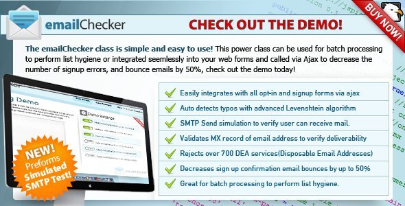 The emailChecker class is the ultimate in usability and improving user experience. It’s a fact that a huge percentage of your users mistype their email address during signing up, joining mailing lists, and while creating accounts. Studies have shown that using emailChecker you can decrease the number of signup errors, and bounce emails by 50%! Demo: http://codecanyon.net/item/emailchecker-ultimate-email-hygiene/3908454 http://zippyshare.ws/6jw/emailchecker.rarhttp://www.mirrorcreator.com/files/R56Z5OW0/emailchecker.rar_linkshttp://ul.to/l0hnqf0phttp://www47.zippyshare.com/v/VYlpGkF3/file.htmlhttp://www.solidfiles.com/d/106a73d3a8/https://userscloud.com/a9jqafu3y7ymhttps://www.sendspace.com/file/aiwnjjhttp://www.mediafire.com/download/dcj6hb1zz96xn04/emailchecker.rar This file has UNTOUCHED status - (original developer code without any tampering done)