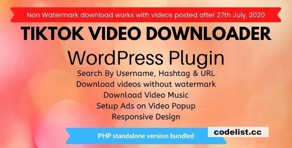TikTok Video Downloader is premium WordPress plugin to provide easy to use TikTok video (watermarked and no-watermarked) and music download tool for the visitors.Demo: https://codecanyon.net/item/tiktok-video-downloader-wordpress-plugin/26370715 https://www109.zippyshare.com/v/Qi3u8fSy/file.htmlhttp://ul.to/z22a2mxkhttps://www.mirrored.to/files/0SHFU3AC/tiktokdownloader-210.rar_linkshttps://krakenfiles.com/view/v529Xfsvxd/file.htmlhttps://ddownload.com/6qw8cfb2ckyyhttps://bayfiles.com/b342rc2dy9https://1fichier.com/?bh985z915fkvns8q3ko8 View the full article