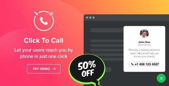 11. Click To Call by Elfsight is a widget, which makes it absolutely easy for your website users to dial your phone number without leaving the site. One click on the phone icon starts a call on mobile devices, and on PCs, it displays your phone number in the call window, where you can also display a photo of a communications person and a short text. For the most efficient widget work, you can choose separate pages where it will show, the type of visitors who could see it and an activating condition that will control its displaying.Demo: https://codecanyon.net/item/elfsight-click-to-call/24493801 https://www63.zippyshare.com/v/Kj42lOin/file.htmlhttp://ul.to/jk12ipuhhttps://www.upload.ee/files/11750960/clicktocall-120.rar.htmlhttps://ulozto.net/file/15F7qX3Y7uE0/clicktocall-120-rarhttps://novafile.com/jrid9pv52rklhttps://myfile.is/TbG4td2fo5https://www.mirrored.to/files/7YLUWZ7G/clicktocall-120.rar_linkshttps://mirrorace.com/m/1D247https://megaupload.is/PaG2t028o4https://dropapk.to/3arty4 View the full article