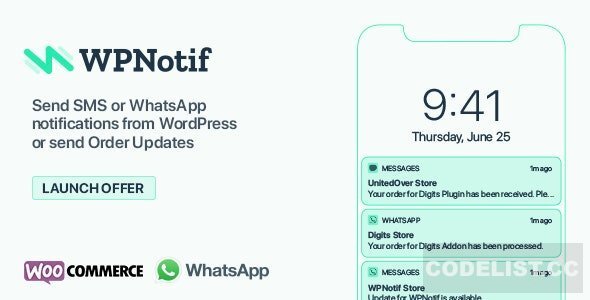 8. Wpnotif lets you send notifications using SMS or WhatsApp to your customers from your WordPress site. The plugin is also fully compatible with WooCommerce and you can setup automatic notification triggers for your customers whenever they create a new order or whenever the status of that order is changed. Site admins including, store owners, editors etc can also setup messages or WhatsApp notifications for themselves.Demo: https://codecanyon.net/item/wpnotif-wordpress-sms-whatsapp-notifications/24045791 https://workupload.com/file/ZrME6fNzCTphttps://www.upload.ee/files/17534858/wpnotif-3011.rar.htmlhttps://qiwi.gg/file/3kKJ1469-wpnotif-3011https://pixeldrain.com/u/PAoLK9YDhttps://www.mirrored.to/files/01OTHB1D/wpnotif-3011.rar_linkshttps://mirrorace.org/m/9ntafhttps://krakenfiles.com/view/iwnXLd4lYA/file.htmlhttps://katfile.com/1cg2sepkfpxyhttps://hxfile.co/j7452u23hzoehttps://ddownload.com/ks2yz6bzpvrhhttps://clicknupload.name/8c3h6lm6mfavhttps://1fichier.com/?twpob2mocsv96pnzb029