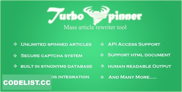 Turbo Spinner is a advanced automatic article spinner can instantly rewrite any data into SEO friendly unique content. Helps to avoid duplicate content penalties from search engines. It comes with API Access, Therefore you can generate unlimited SEO friendly unique content from any platform. Sell your API keys to your client and manage via admin panel. Mostly turbo spinner rewrite text can be human readable text and 100% unique from other services. So, very useful for mass posting blog and web services. Demo: https://codecanyon.net/item/turbo-spinner-article-rewriter/8467415 https://www76.zippyshare.com/v/GsBpeiY6/file.htmlhttp://ul.to/wexhddh8https://www.mirrored.to/files/QEPKDTHV/turbospinner-18.rar_linkshttps://mirrorace.org/m/1M9nhhttps://krakenfiles.com/view/5StTamUxEw/file.htmlhttps://hxfile.co/tmeg6kjmazcchttps://gofile.io/d/7YnX4Hhttps://www.fireload.com/f77203fa7576a671/turbospinner-18.rarhttps://evoload.io/v/kaMCWXQnmN2fFThttps://drop.download/0dprfir5edjl/turbospinner-18. View the full article