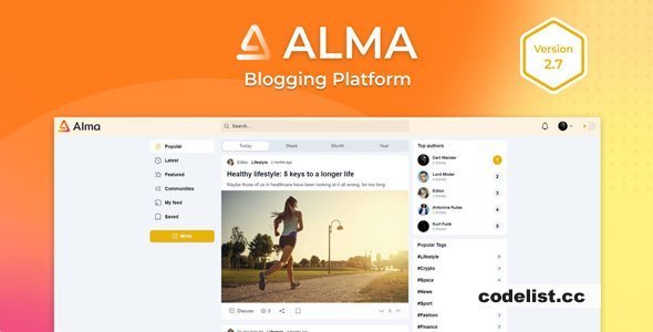 Alma is a blogging platform application built with Laravel, Livewire, Tailwind CSS, and AlpineJS. The script is intended primarily for creating news or thematic websites, blogs, or communities of interest with a large informational context. The script is optimized for search engines, which will bring additional users to your site. It is a fully responsive and mobile-friendly application.Demo: https://www.codester.com/items/39401/alma-blogging-platform https://workupload.com/file/6HjwHsa2UHthttps://www.upload.ee/files/17276693/alma-27.rar.htmlhttps://www.sendspace.com/file/bd74jghttps://qiwi.gg/file/xzYk7602-alma-27https://pixeldrain.com/u/G19xMgr2https://www.mirrored.to/files/GJD3MOFY/alma-27.rar_linkshttps://mirrorace.org/m/5Z6w6https://krakenfiles.com/view/v2tdc9KJxL/file.htmlhttps://katfile.com/mvdmdjexh4i6https://hxfile.co/9u96beqtr0fahttps://ddownload.com/stl51b2tgpnmhttps://clicknupload.name/k2f0pv7kkzeahttps://1fichier.com/?utj0jijxd95l2i88e2wc View the full article