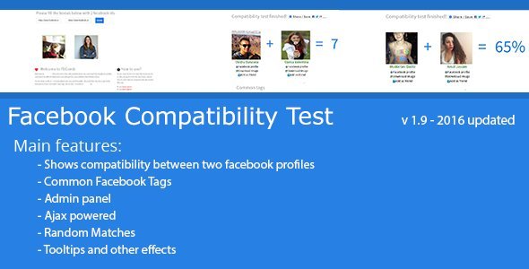 Fbcomb is the first script that allows you to insert 2 facebook users,and based on their common interests,you will receive the level of compatibility.It has a pretty complex altghoritm on the backend,that tries to make the compatibility level real as much as possible,altough,if the profiles are inaccessible or they are private,the script will generate a random compatibility level,but as the same time,constant,so if you insert the same profiles 2 times,you will get the same result.You can also chose and optimize you matching altgorithm from the admin panel.Demo: https://codecanyon.net/item/fbcomb-fresh-viral-fb-app/3448886 http://hfiles.ro/download/fbcomb_19.rar/1528705http://www.mirrorcreator.com/files/0A4V17JQ/fbcomb-19.rar_linkshttp://ul.to/zqxbktqqhttp://www110.zippyshare.com/v/ot511K3c/file.htmlhttps://www.solidfiles.com/v/w8RyazYZkPnxVhttps://userscloud.com/qr8z9xq6g6c3http://www.mediafire.com/download/kco1ovv60g3ht22/fbcomb-19.rarhttps://www.sendspace.com/file/scgz35http://www View the full article