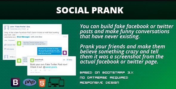 You can build fake Facebook or Twitter posts and make funny conversations that have never existing. Prank your friends and make them believe something crazy and tell them it was a screenshot from the actual facebook or twitter page.Demo: http://codecanyon.net/item/social-prank/11394779 http://hfiles.ro/download/socialprank_26.rar/1520869http://www.mirrorcreator.com/files/0MALR2WO/socialprank-26.rar_linkshttp://ul.to/qiowqgephttp://www115.zippyshare.com/v/TWHlPntS/file.htmlhttps://www.solidfiles.com/v/DkwqnZZjXY5qkhttps://userscloud.com/jf7ugl01sqlrhttps://www.sendspace.com/file/57duashttp://www.megamirror.net/7g17if25dw76http://www.mediafire.com/download/6vwlzjcdiukqoel/socialprank-26.rar View the full article
