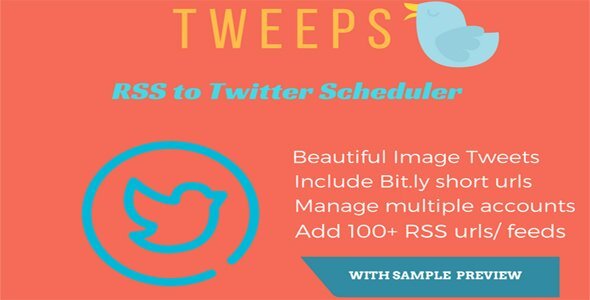 With tweeps you can automate Tweets from any RSS or Feed source like WordPress Blogs, Feedburner Feeds, Websites with RSS feeds, Youtube, Envato rss feed etc. With Tweeps you get potential to send 1000+ tweets per day for individual twitter accounts.Demo: https://codecanyon.net/item/tweeps-rss-to-twitter-scheduler/18192247 http://allfiles.ro/download/tweeps.rar/1615225http://www.mirrorcreator.com/files/1BU14HPG/tweeps.rar_linkshttp://ul.to/v106wj4zhttp://www108.zippyshare.com/v/jzhxbMwk/file.htmlhttp://userscloud.com/yb5ndexowymkhttp://www.mediafire.com/file/xevc9ggx13s22st/tweeps.rarhttps://www.sendspace.com/file/3xr7m4https://www.mupload.net/7bx8ebqqjq0ghttps://oload.stream/f/_7Bd46yH6qk/tweeps.rar View the full article