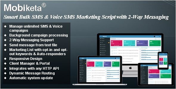 Mobiketa Is a full-featured Bulk SMS and Voice SMS marketing script that gives you control over your mobile campaigns and enhances your mobile marketing business. Mobiketa has rich features like Voice SMS support, 2-way SMS support, Dynamic SMS Routing, Message Scheduler, Campaign Management, Marketing Lists with Opt-in, Opt-out and Help Keywords, Subscriber Management, Campaign Reports and Analytics, Auto-Responders, Client Manager, HTTP API, Responsive interface and much more.Demo: https://codecanyon.net/item/mobiketa-complete-mobile-marketing-script-with-bulk-sms-voice-sms-2way-messaging-support/16494684 https://www68.zippyshare.com/v/eAPPMohV/file.htmlhttp://userscloud.com/5k359cgr4dl1http://ul.to/cwux74cfhttp://uploadboy.me/flnkb6e92yjx/mobiketa-401.rar.htmlhttps://www.sendspace.com/file/3s6qwghttps://sendit.cloud/vcfj2rllm52lhttps://oload.stream/f/jUii59tyEMY/mobiketa-401.rarhttp://www.mirrorcreator.com/files/1KBT2PZB/mobiketa-401.rar_linkshttp://www.mediafire.com/?ta55pcava8h View the full article