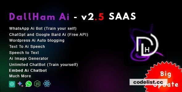 21. Introducing DallHam V2, the first-ever app on Codecanyon with Google Bard AI. It features a WhatsApp AI chatbot (You can train for your business) for personalized customer interactions, an AI image generator, text-to-speech and speech-to-text capabilities, and WordPress AI auto blogging. Enhance your business operations with this powerful app that combines advanced AI features for improved productivity and customer engagement. Demo: https://codecanyon.net/item/dallham-ai-ai-whatsapp-chatbot-ai-content-creator-image-generator-saas-system/43648878 https://workupload.com/file/B2tTnPxA3Fnhttps://userscloud.com/eqq6f8pq6i7uhttps://www.upload.ee/files/15690148/dallham-25.rar.htmlhttps://pixeldrain.com/u/LDu2z4qnhttps://nippyspace.com/v/505512https://www.mirrored.to/files/BAQV95CY/dallham-25.rar_linkshttps://mirrorace.org/m/2x1S4https://krakenfiles.com/view/f9RBpyNjxJ/file.htmlhttps://hxfile.co/336jhv9h2p62https://gofile.io/d/7SYunchttps://desiupload.co/t10ot318tq2yhttps://ddownload.com/ut View the full article