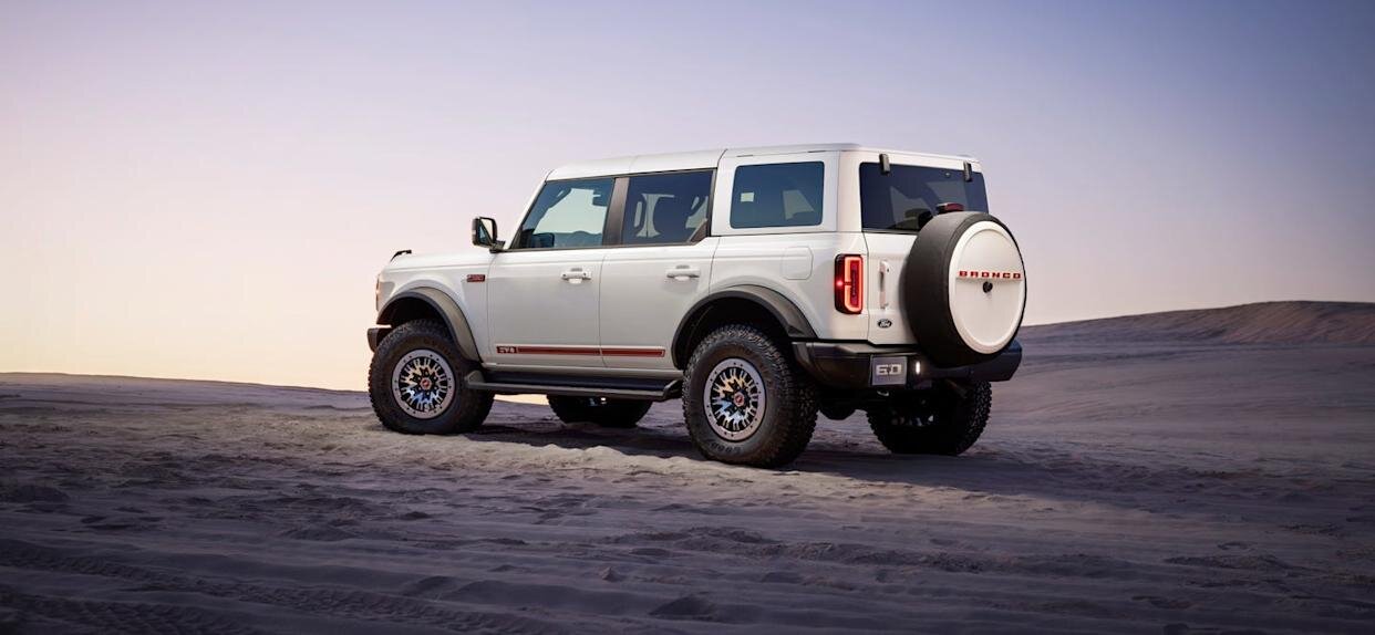 5. The 2026 Ford Bronco is available with a new 60th Anniversary package that gives it a flashier throwback appearance. Exclusive bits included intricate wheels with retro hubcaps, a special grille, a white-painted roof, and a two-tone leather interior. The Bronco 60th Anniversary is based on the Outer Banks trim equipped with the off-road-ready Sasquatch package; pricing will be revealed later this year. When something has 60 years of history, there are a lot of different ways to celebrate it. The 2026 Ford Bronco represents six decades since the original model debuted for the 1966 model year, and as a little birthday gift, the blue-oval brand has introduced a special 60th Anniversary package for its popular off-road-ready mid-size SUV. The Bronco's BdayBased on the Bronco's Outer Banks trim, complete with the Sasquatch package (35-inch all-terrain tires, front and rear locking diffs, upgraded suspension, etc.), the 60th Anniversary kit gives the modular ute a flashier appearance. Every version has a white-painted hardtop, and it can be paired with matching Wimbledon White paint (same as the OG Bronco) or Ruby Red. FordObviously, no special edition is complete without commemorative callouts, and the Bronco 60th Anniversary has several of them. Take the intricately designed 17-inch wheels painted Gravity Gray, which feature retro hubcaps that resemble their ancestors with Vermilion Red centers that also feature Ford's famous bucking bronco logo and "1966." There are also 60th Anniversary badges on the front fenders, and that theme continues with the Vermilion Red bodyside decals. That distinctive color is also found on the lettering on the heritage-style grille, which matches the wheel color and is only found on this throwback Bronco. The hardcover spare-tire carrier that's mounted on the back of the SUV is another unique detail, as it sports a white center with red lettering. A set of running boards is also included out of the box. FordInside, the 60th Anniversary package adds an attractive two-tone color scheme. The leather seats feature Ebony outer sections with Alpine inserts, and "60" is debossed in the back of the seat cushions. Alpine contrast stitching is seen throughout the cabin, including on the top of the dashboard. For 2026, the Bronco lineup now offers grab handles on the A-pillars, which will help folks climb in and out of the anniversary edition. The 2026 Ford Bronco 60th Anniversary has standard four-wheel drive, and customers can choose between the standard 2.3-liter turbo four or the mightier twin-turbo 2.7-liter V-6. Ford says the special edition, along with the rest of the lineup, will be available to order in October. Pricing will be announced sometime before the Bronco's on-sale date. You Might Also Like Car and Driver’s 10 Best Cars through the Decades How to Buy or Lease a New Car Lightning Lap Legends: Chevrolet Camaro vs. Ford Mustang!