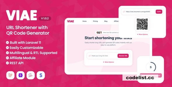 Viae is an advanced, responsive and modern script for url shortening coded with Laravel 11 and Vanilla JS. It is easily customizable with page builder and widgets. The seo settings of each page can be adjusted. All PHP codes are written in accordance with PSR standards. HTML codes have been tested in W3C validator. CSS files are created with SASS.
