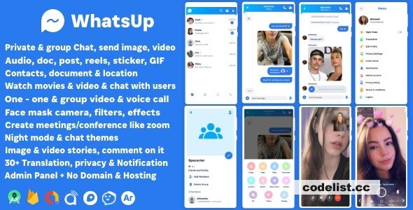 WhatsUp v1.0 & WhatsApp Clone Chat Groups Video & Audio Call Zoom Watch Party Chatting Social Network App » Premium Scripts, Plugins & Mobile