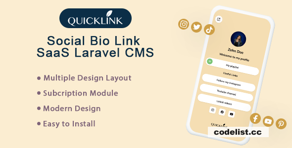 QuickBioLink is a comprehensive SaaS platform developed using the Laravel CMS framework, tailored to meet the needs of creators, influencers, and businesses. It empowers users to create and manage bio link pages that seamlessly connect their audiences to multiple online destinations, boosting engagement and conversions.