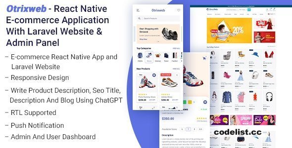 Otrixweb v1.3.0 & React Native Ecommerce Application With Laravel Website