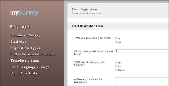 mySurvey is a php and ajax system that allows you to run and create your own surveys faster and easier with ability to customize the questions, answers, the theme and the surveys. There are 3 easy steps to publish a survey: create a survey, add questions and answers and publish the survey. mySurvey supports creation of: multiple choice questions, rank order questions, rating scale questions, open ended questions, close ended questions with the questions types. Demo: https://codecanyon.net/item/mysurvey/6794645 https://workupload.com/file/kx9peA9AnCYhttps://www.upload.ee/files/18473773/mysurvey-15.rar.htmlhttps://pixeldrain.com/u/hqSKF4Kphttps://www.mirrored.to/files/IBK8DK7M/mysurvey-15.rar_linkshttps://krakenfiles.com/view/raDPtp9Fmp/file.htmlhttps://katfile.com/is6rkyqi4maohttps://ddownload.com/b630ayt2pm2dhttps://bowfile.com/Lu5ehttps://1fichier.com/?1cmzp1r6s5b3fhyvarwzhttps://1cloudfile.com/29skw