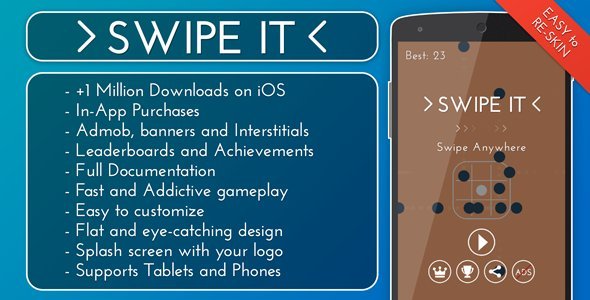 Swipe It is a highly addictive game where you have to swipe the dot to avoid getting hit by the black balls that appear all over the place. Get the rotating blue squares and achieve the High Score! This game is made in Java using ANDROID STUDIO but can also be imported using ECLIPSE. The game has been created using LibGDX framework which is also made in pure java. Demo: https://codecanyon.net/item/swipe-it-admob-iap-leaderboards/11784109 http://hfiles.ro/download/swipeit.rar/1593297http://www.mirrorcreator.com/files/FKN3BSTU/swipeit.rar_linkshttp://ul.to/xwg58iazhttp://www62.zippyshare.com/v/SRnV4uhc/file.htmlhttps://www.solidfiles.com/v/xqmkzaMR6qBQYhttps://userscloud.com/uc96dh0lsg1nhttps://www.sendspace.com/file/jn6604http://www.megamirror.net/aqm6ulcgshr7https://oload.stream/f/-4HzbLiVlfY/swipeit.rarhttp://www.mediafire.com/file/9vzb321uhcf481s/swipeit.rar