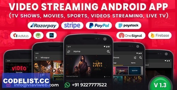 Video Streaming Android App v1.3 & TV Shows, Movies, Sports, Videos Streaming, Live TV