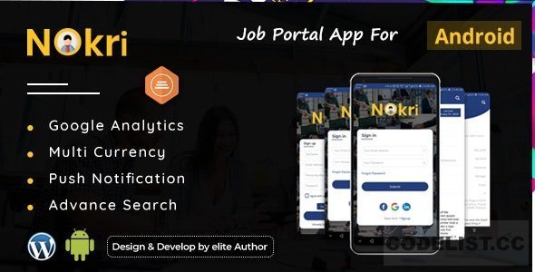 Nokri – Job Board Native Android App is an advanced job board Android App. It contains all the required features for creating a successful job portal website. Nokri is a complete and easy to use job listings website. Using Nokri Job Board Native Android App you can create a complete & fully Responsive job portal, career platform to run human resource management, recruitment, freelancing or job posting website. A complete job board App that is loaded with separate panels for employers and candidates. Panels are with convenient search filters both can manage each and everything easily. Job Board Native Android App has both android and IOS applications available. Get apps and take a step ahead from your competitors.Demo: https://codecanyon.net/item/nokri-job-board-native-android-app/22744185 https://www103.zippyshare.com/v/yrpfOFu4/file.htmlhttp://ul.to/rrg11qw2https://www.mirrored.to/files/INUGA5LY/nokriapp-225.rar_linkshttps://mirrorace.org/m/37hkphttps://krakenfiles.com/view/hMVgww7