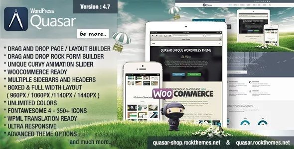 Quasar is a clean and lightning fast Wordpress Theme with Ultra Responsive 12 Columns grid system (resize your browser for responsivity) and specially designed for business and corporate website. Quasar supports Retina Display (HiDPI) and WPML (Multi Language). Demo: Live Preview Downlaod [字段:下载地址]